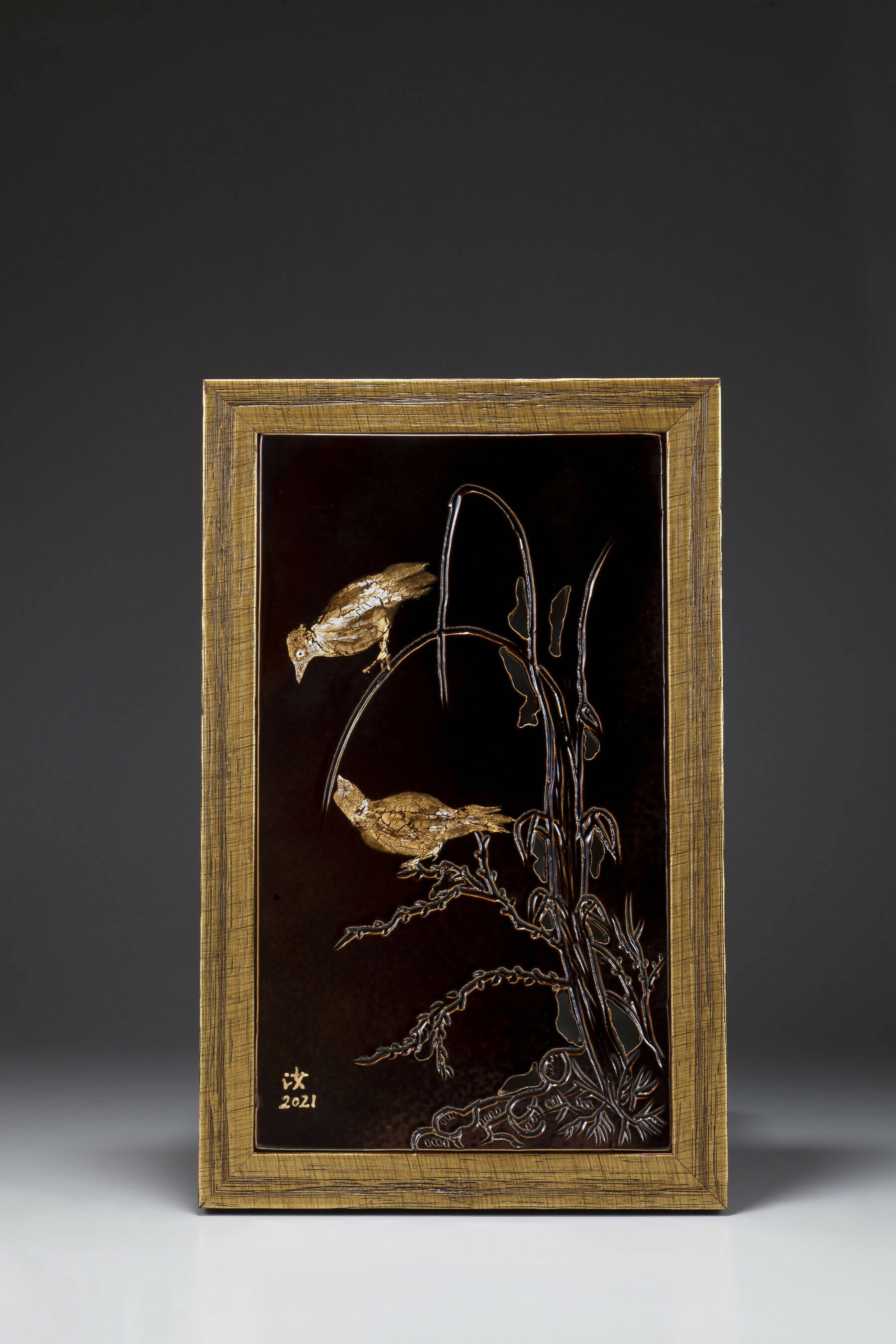 Natural leaves fired with clay and glaze at temperatures exceeding 1200 degrees Celsius