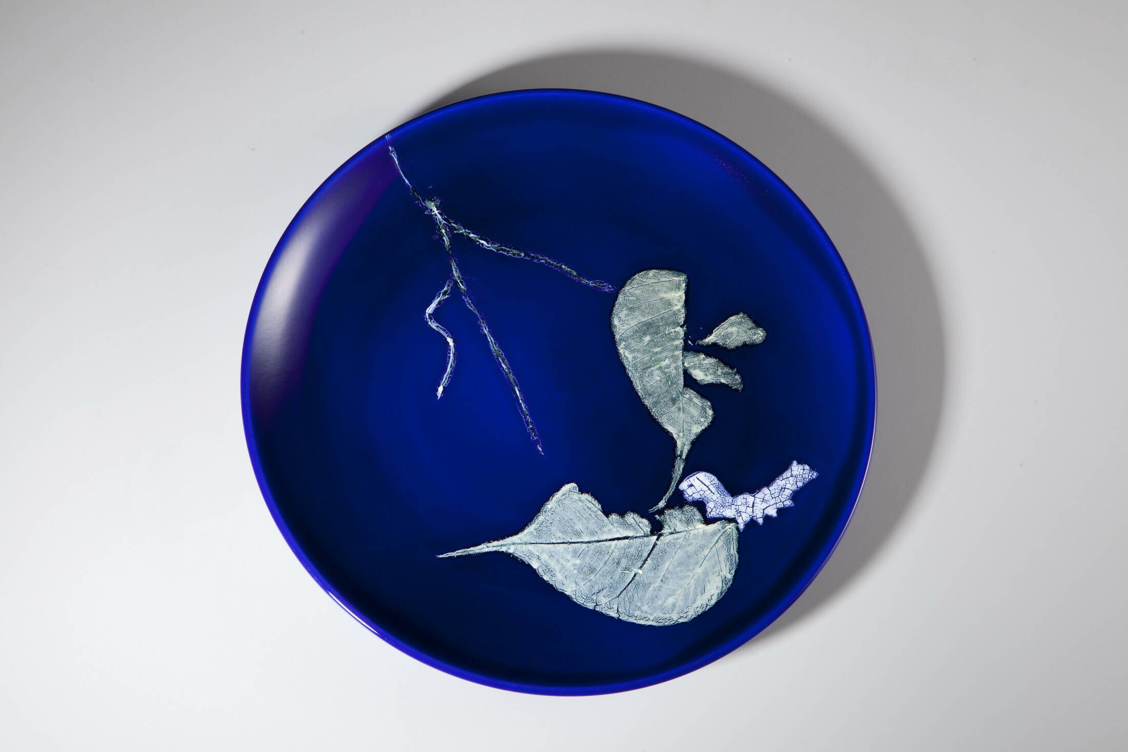 Natural leaves fired with clay and glaze at temperatures exceeding 1200 degrees Celsius