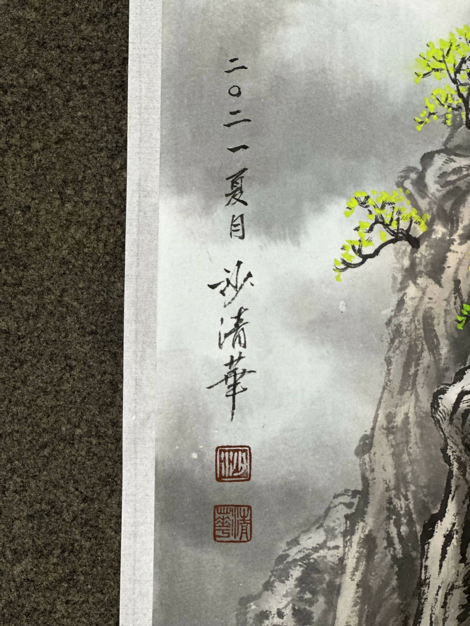 Signature: Hand-signed and personal seal of artist + year on the left side