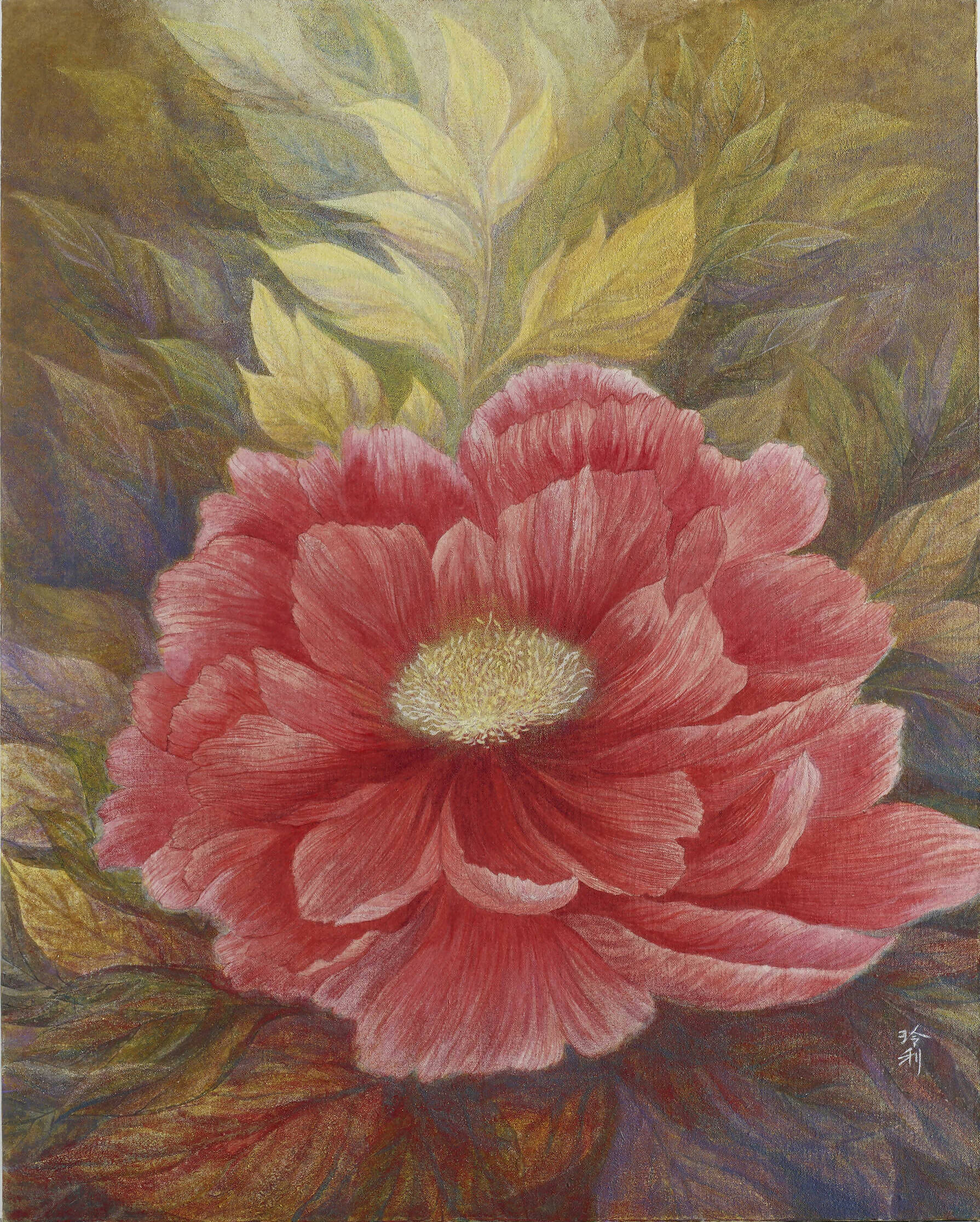 This piece that depicts a vibrant flower in full bloom reminds us that beauty in the material realm is fleeting – flowers bloom and fade, unions and farewells are momentary. While humans have come to appreciate the visual splendor of blooms, they often overlook the beauty inherent in life's transient metamorphosis, where existence is born in a mere instant.