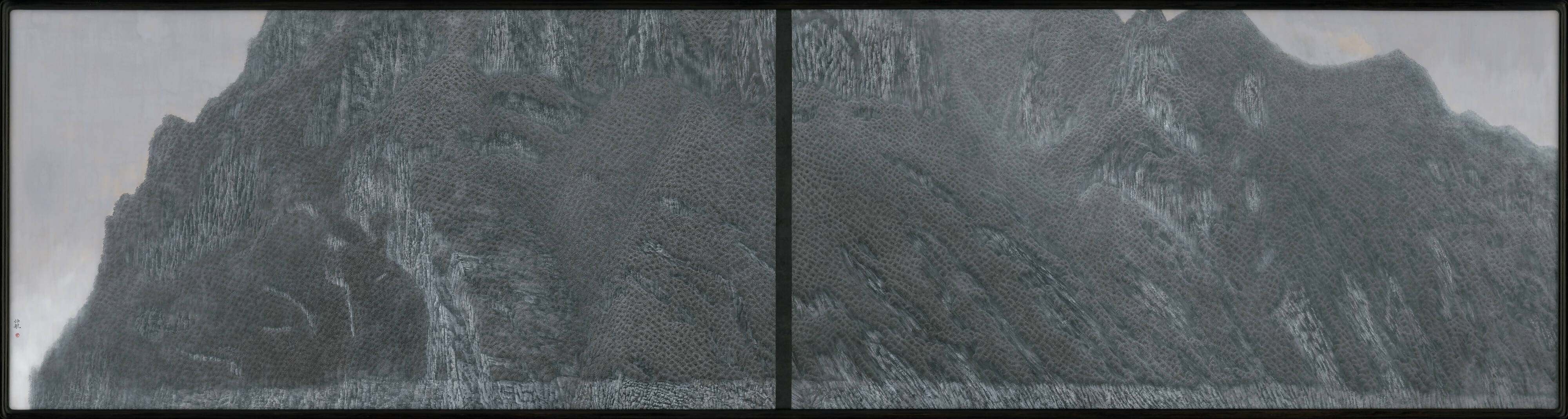 Resembling a mountain yet diverging from it, this piece captures Chen's nuanced interpretation of mountainous forms. Created with layers of intricate ink brush strokes, the piece deviates between the likeness and unlikeness of a mountain—a dichotomy rooted both in Chen's experiential understanding of mountains and in his artistic freedoms. The result is not merely a depiction of majestic scenery but is also a quiet, introspective space filled with the artist's conscious creativity.