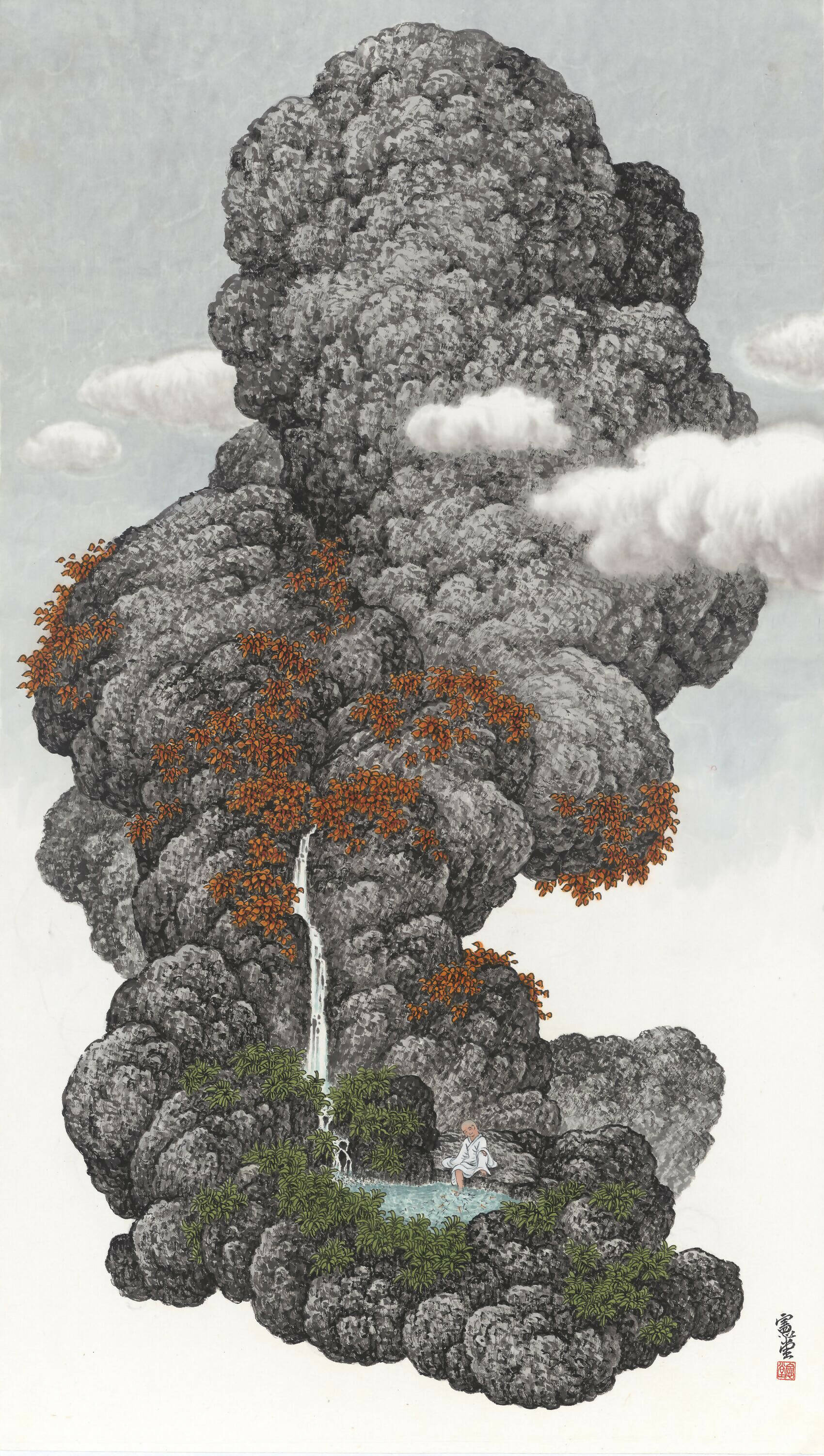 Ink-wash painting, unlike oil, lacks the benefit of coverage and opacity. One single misplaced stroke has the power to disrupt the entire artistic pursuit. There is no such thing as white ink; all white spaces are deliberate omissions on the paper. This juxtaposition of reserved white spaces—depicting clouds, mist, ripples, and streams—demands a high level of proficiency with the brush and a heightened awareness of aesthetics.