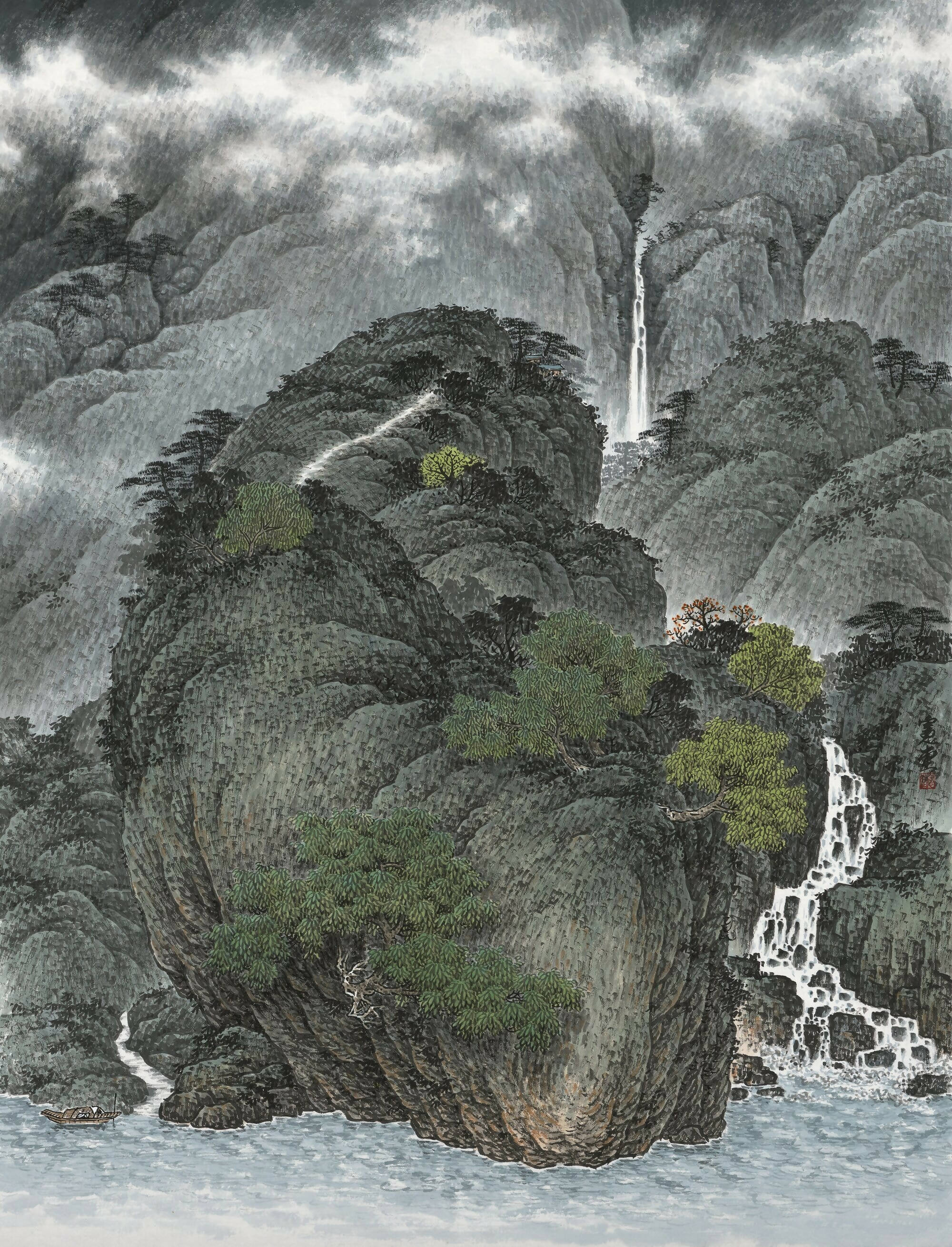 Ink-wash painting, unlike oil, lacks the benefit of coverage and opacity. One single misplaced stroke has the power to disrupt the entire artistic pursuit. There is no such thing as white ink; all white spaces are deliberate omissions on the paper. This juxtaposition of reserved white spaces—depicting clouds, mist, ripples, and streams—demands a high level of proficiency with the brush and a heightened awareness of aesthetics.