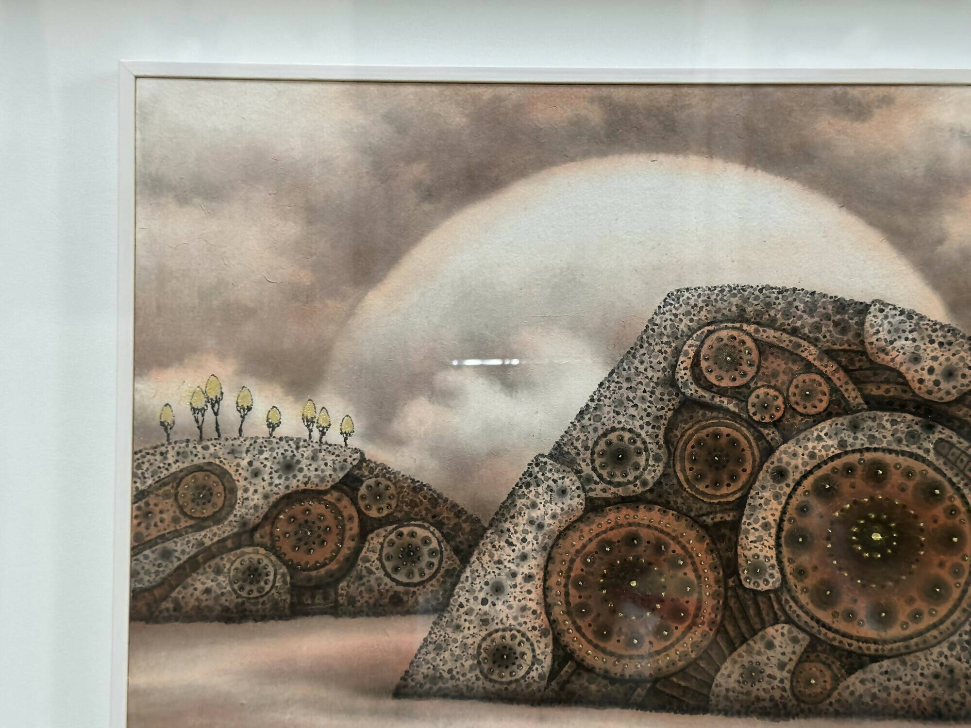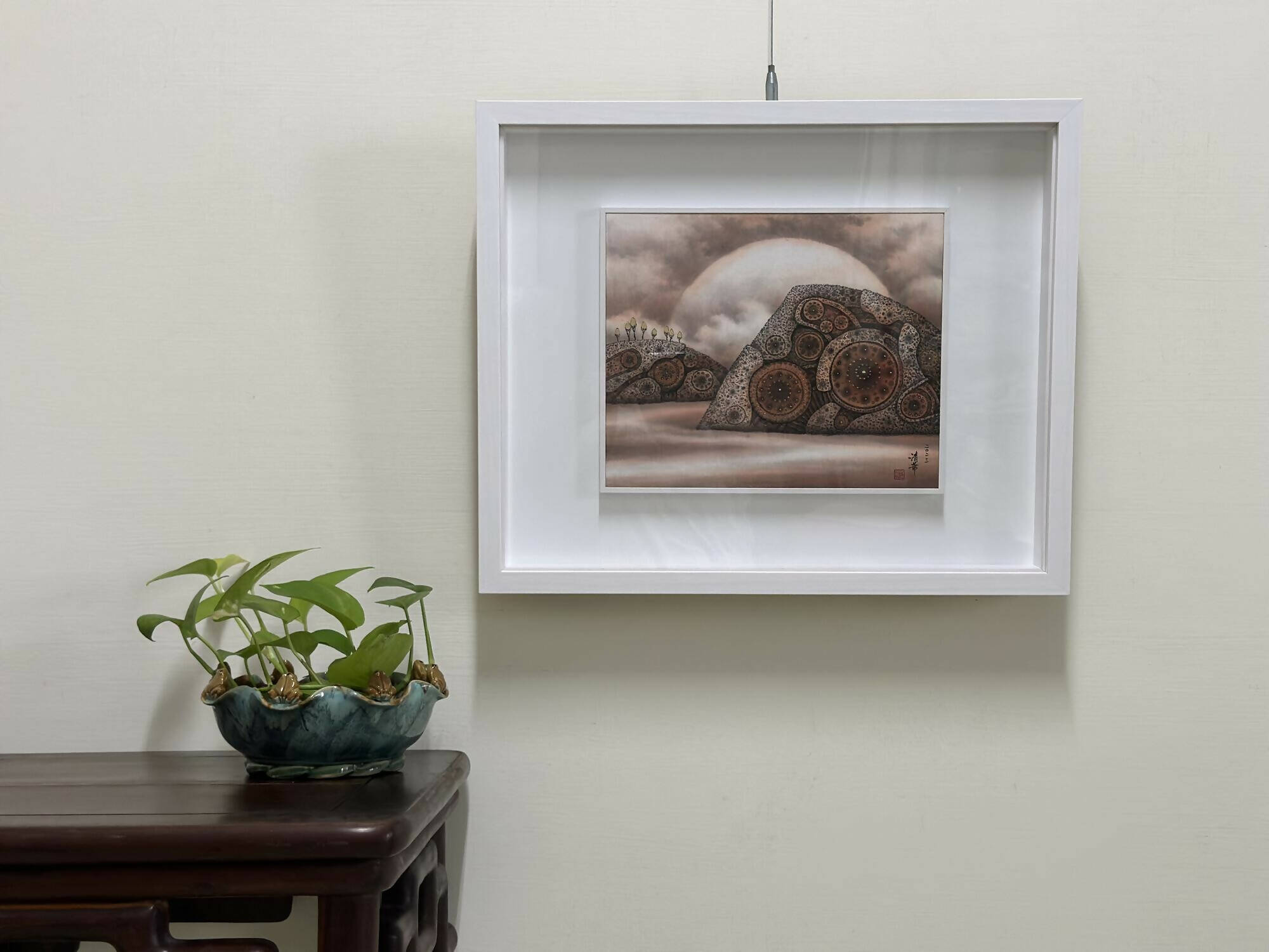 In Sha Qinghua's "Mechanical Landscapes" series, ancient rock surfaces are reimagined, with their myriad cavities morphing into intricate, interconnected fantasy gears. The ceaseless motion of these gears represents the enduring imprints of time's passage, prompting reflections on its relentless flow. Each gearwheel is a testament to the vast interconnectivity of the cosmos.