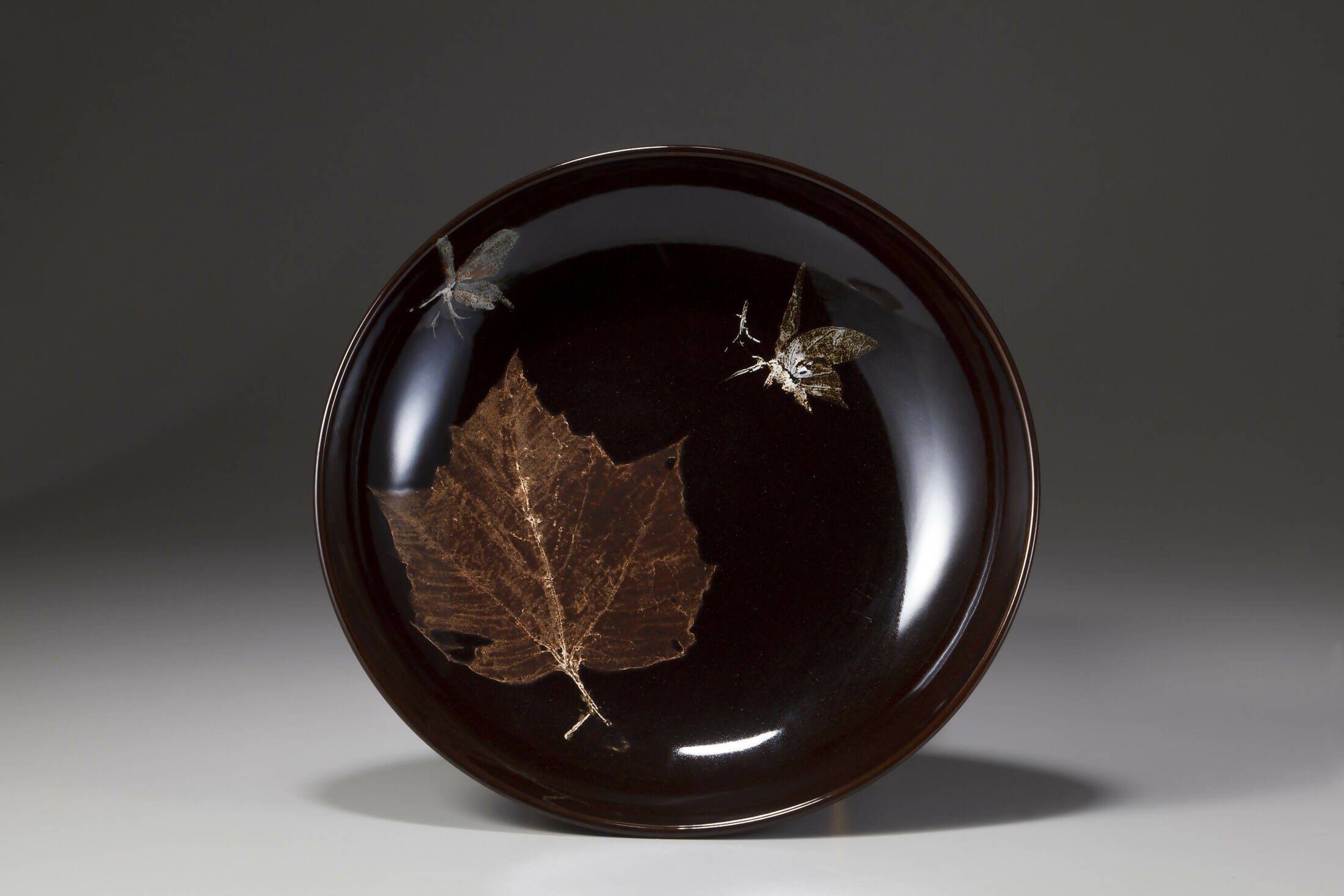 Natural leaves fired with clay and glaze at temperatures exceeding 1200 degrees Celsius