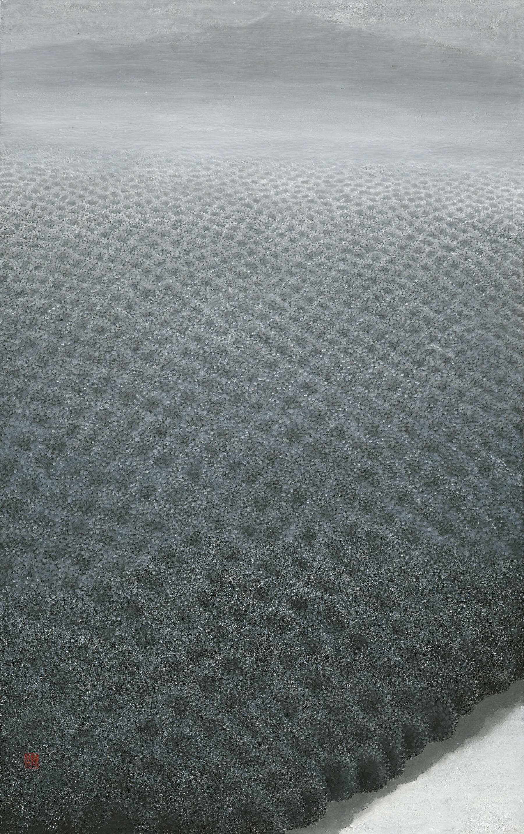 In this piece, the pattern, seemingly regular, is filled with endless subtle variations that extend into the distance before fading into the haze. It is as if these variations inscribe threads of consciousness and emotion onto the landscape, resonating with the Earth's very breath and life.