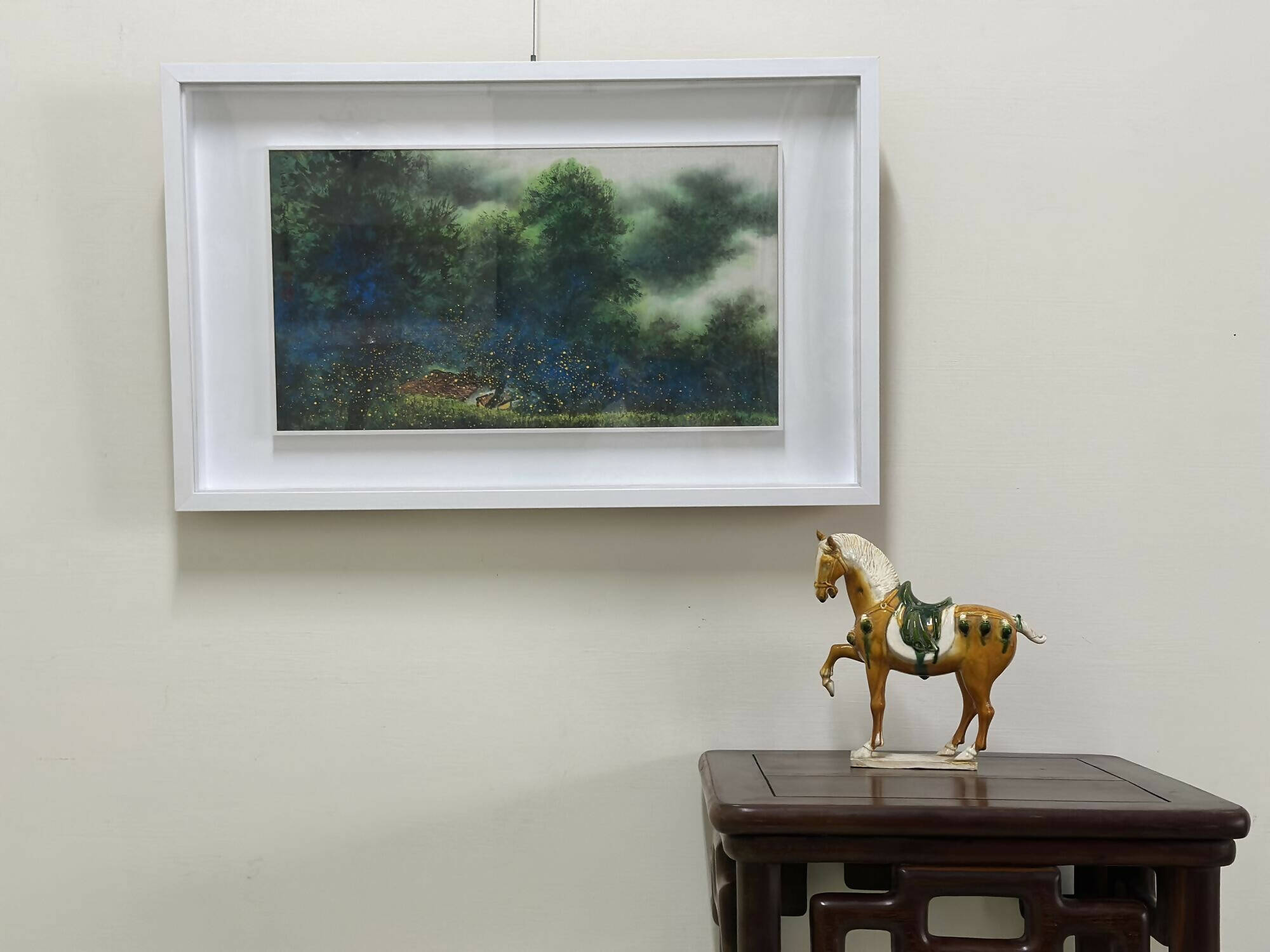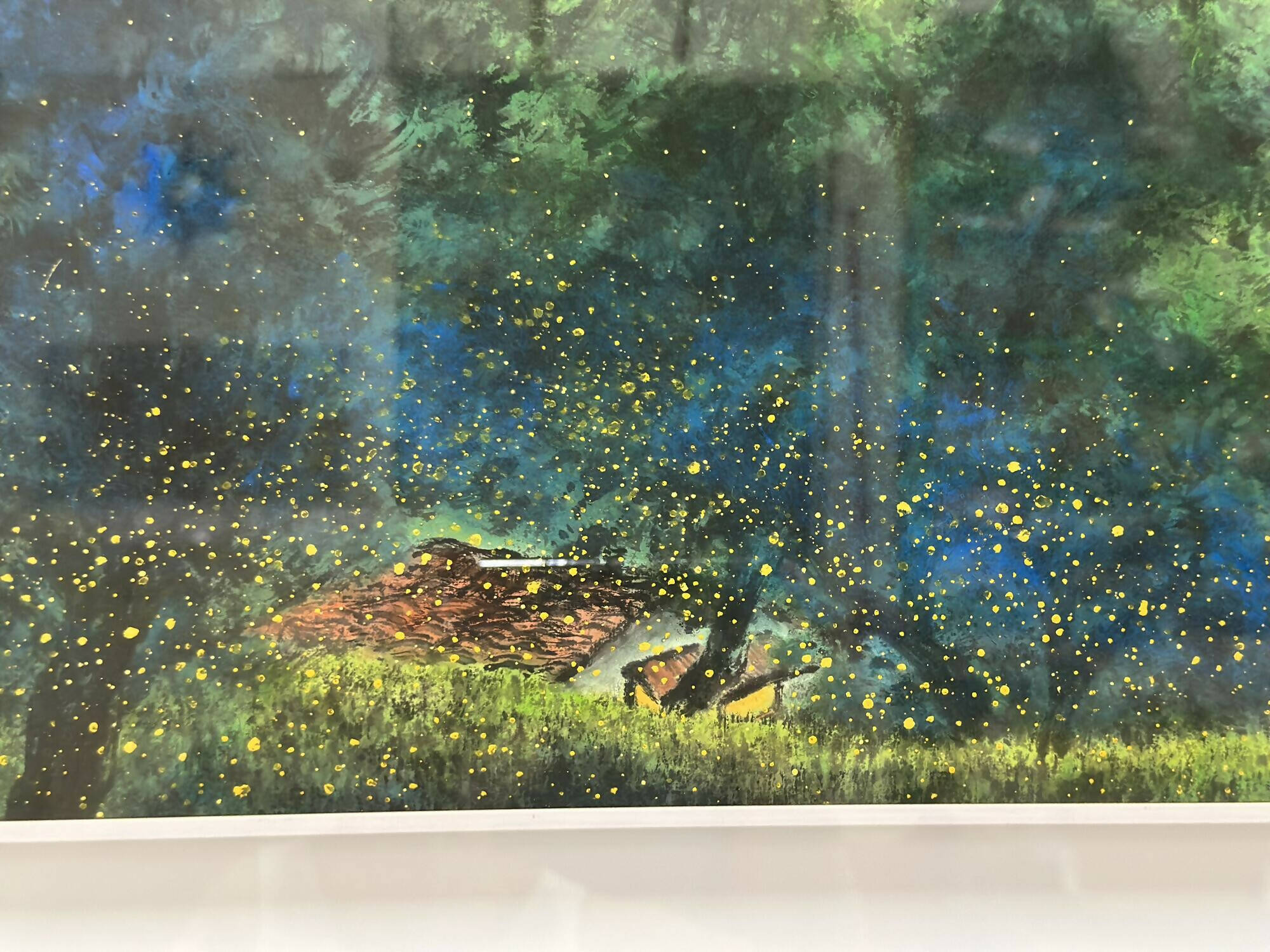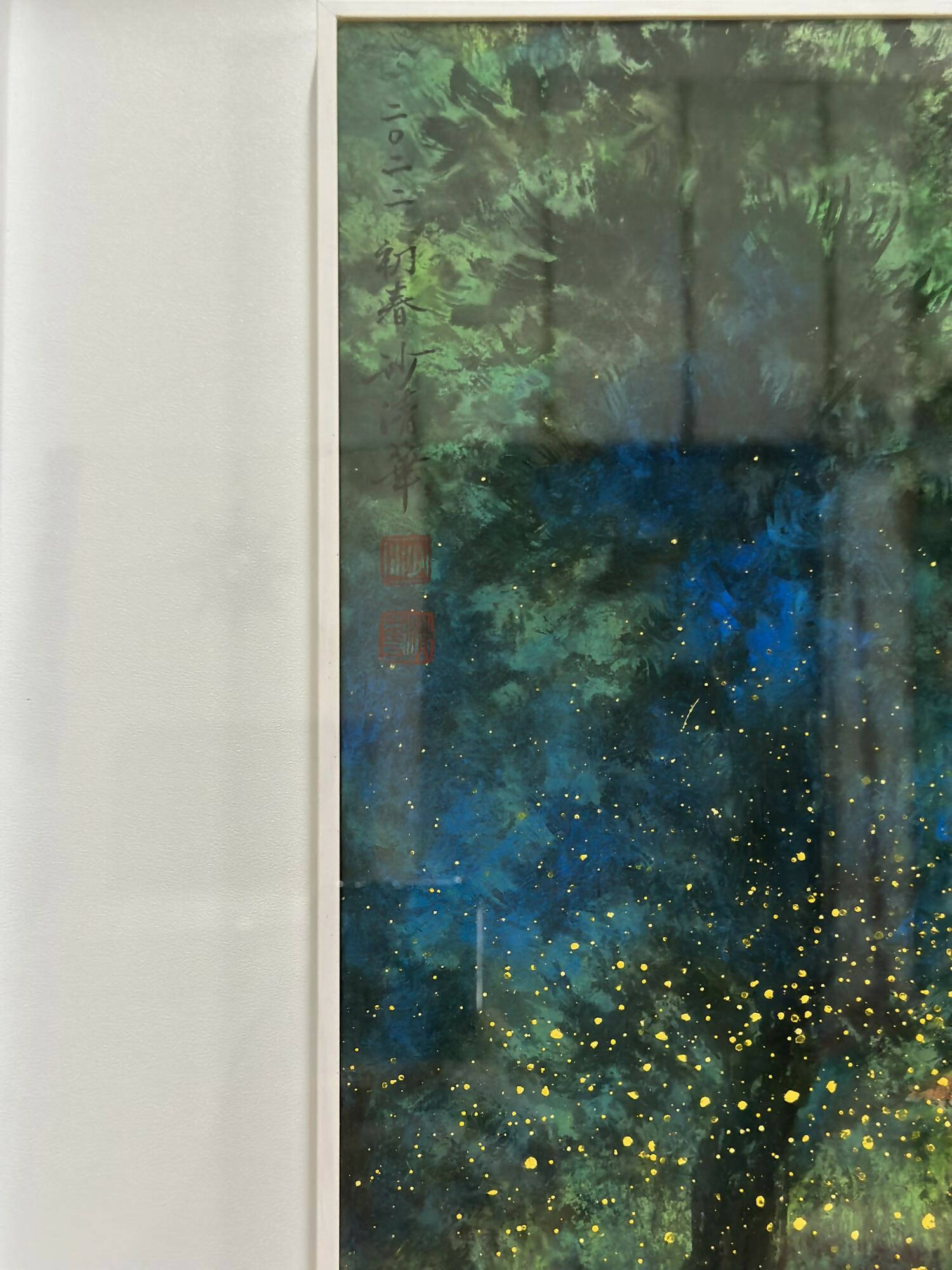 In this piece, the artist captures a seminal moment of witnessing a multitude of fireflies illuminating an early summer evening. In their ethereal dance, these luminescent creatures are reminiscent of stars of the Milky Way. Such a spectacle—wondrous yet fleeting—leaves an indelible impression, and through this artwork, it's memorialized for eternity.
