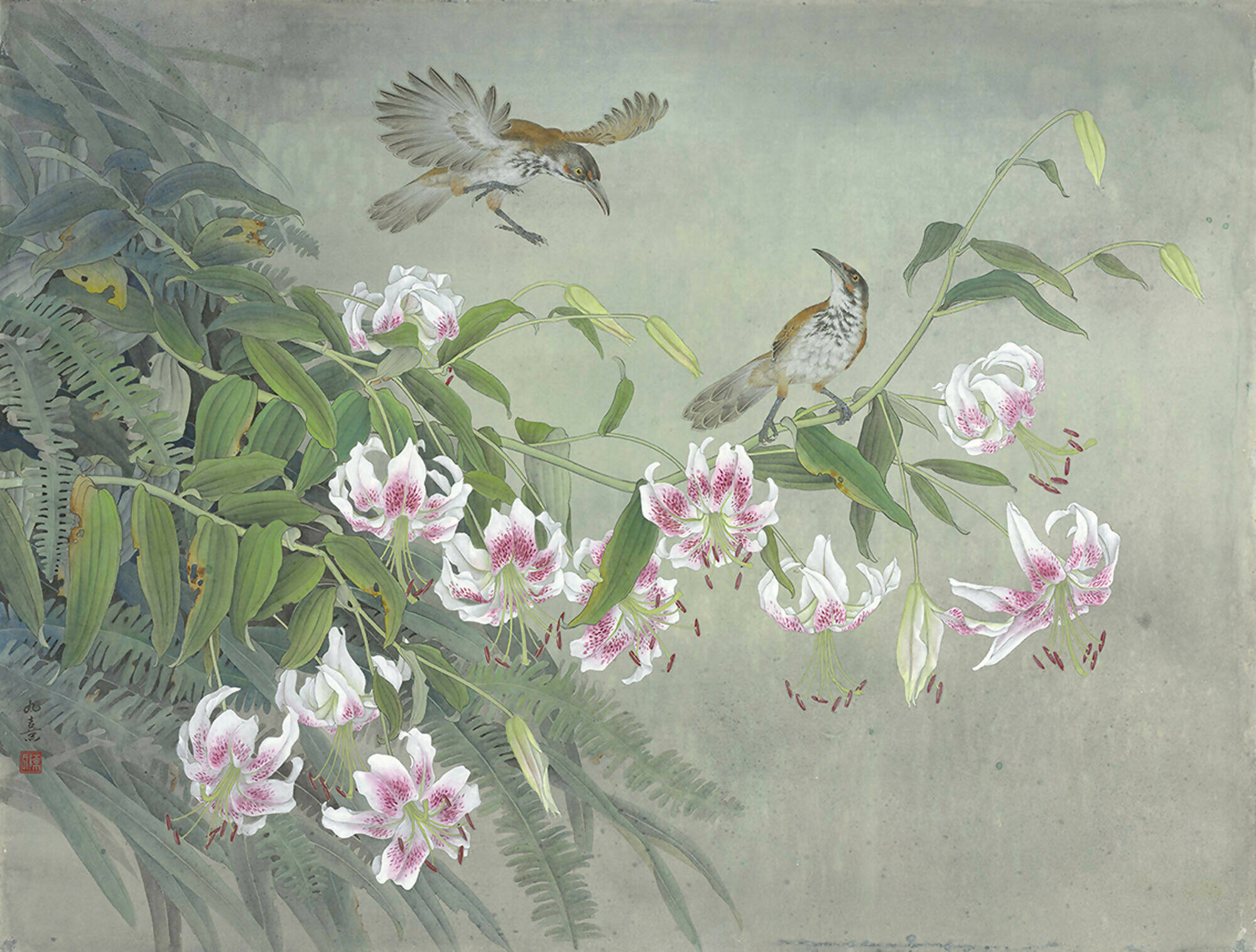 Venturing into Chen Jhiu-Hsi's artistic realm immerses one in a pristine wilderness, where the delineation between art and reality becomes indistinct. Trained by Zhang Keqi, a master of Gongbi—a brushwork technique with a rich history spanning almost two thousand years—Chen Jiuxi has gained prominence primarily for his distinctive "Ecological Art."