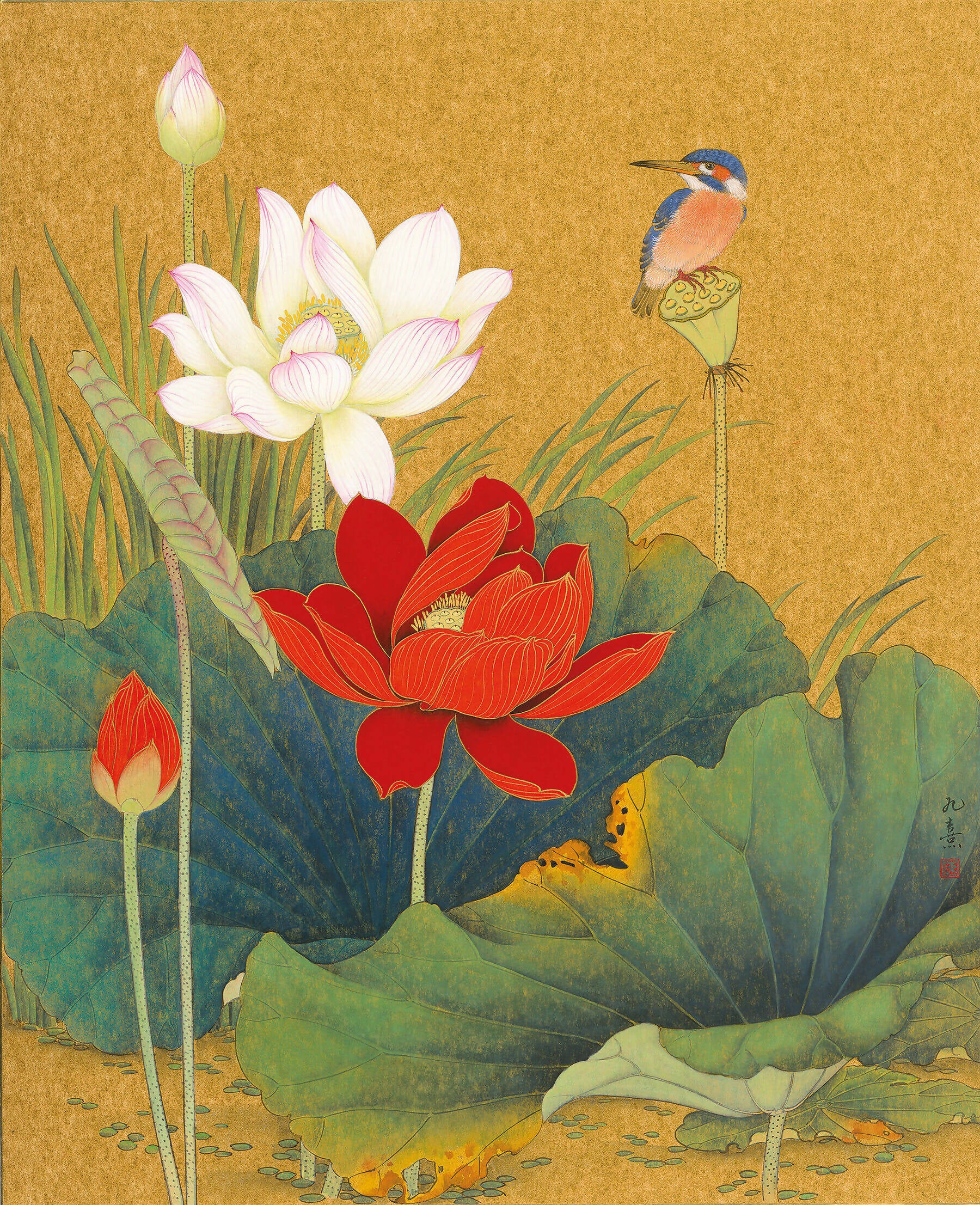 Ink and color on gold paper